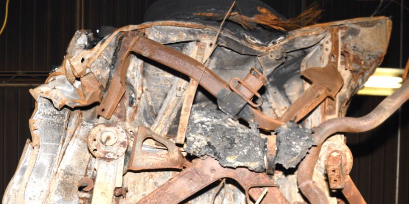 Francois Castaing was absolutely right — the tow package does not protect the tank. In fact, the tow package and trailer hitch receiver only made things worse because when the trailer hitch receiver got hit, it buckled and pierced the exposed, plastic gas tank like an arrow. Below are three real-life pictures from rear-tank Jeeps that had the trailer hitch receiver that FCA offered as a recall. In each case, the Jeep was hit in the rear, the hitch buckled forward, the buckling hitch speared the gas tank, the Jeep burned, and the driver died in the flames. The gas tanks are no longer visible because they melted in the fires.