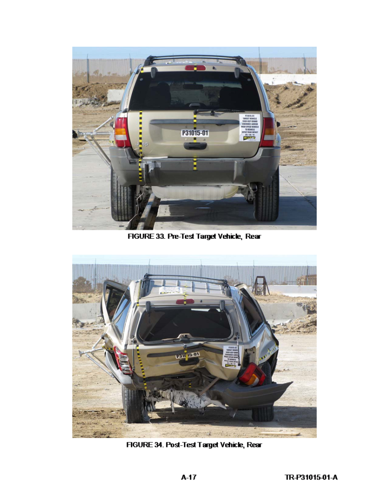 Look for these Jeeps when you’re out driving. There are millions on the road, and the fuel tank is easy to spot. In the picture below, borrowed from the Center for Auto Safety’s website, the fuel tank has been painted white for purposes of the crash test (it’s normally black). When you spot the fuel tank of one of these 1993-2004 Jeep Grand Cherokees, 1993-2001 Jeep Cherokees, or 2002-2007 Jeep Liberties, ask yourself this question: did this make common sense?